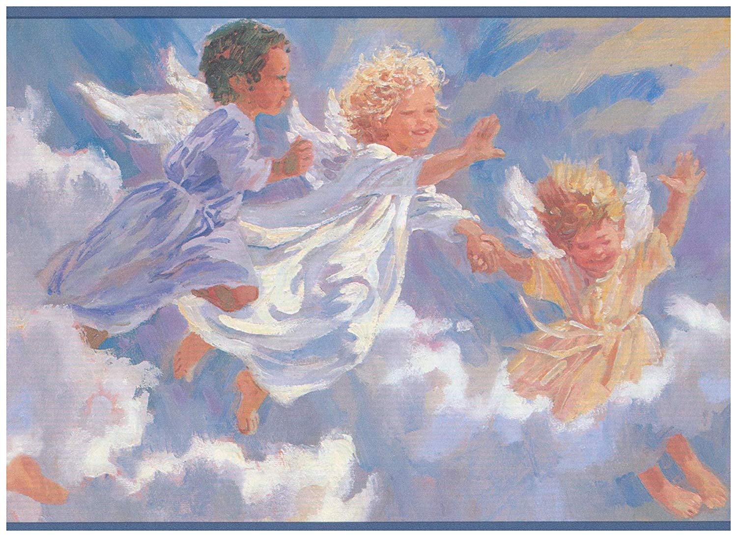 Baby Angels Flying In The Sky Wall Border Retro Design