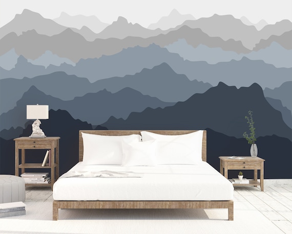 Ombre Mountain Landscape Wall Mural Removable Wall Paper Grayish Mountains Wallpaper Peel And Stick Bedroom Wall Print Nursery Decor
