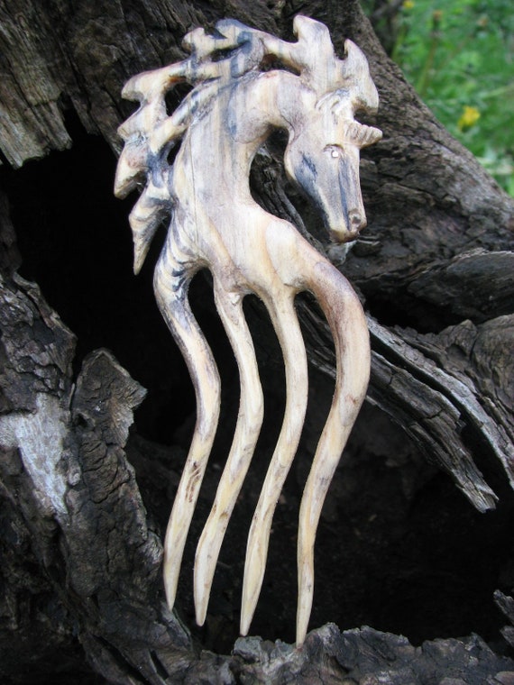 The Mythical Hairpin Comb Unicorn Carved From The Root Of A Mountain Ash Tree Fabu Lous Crest For The Sorceress Wonderful Dream